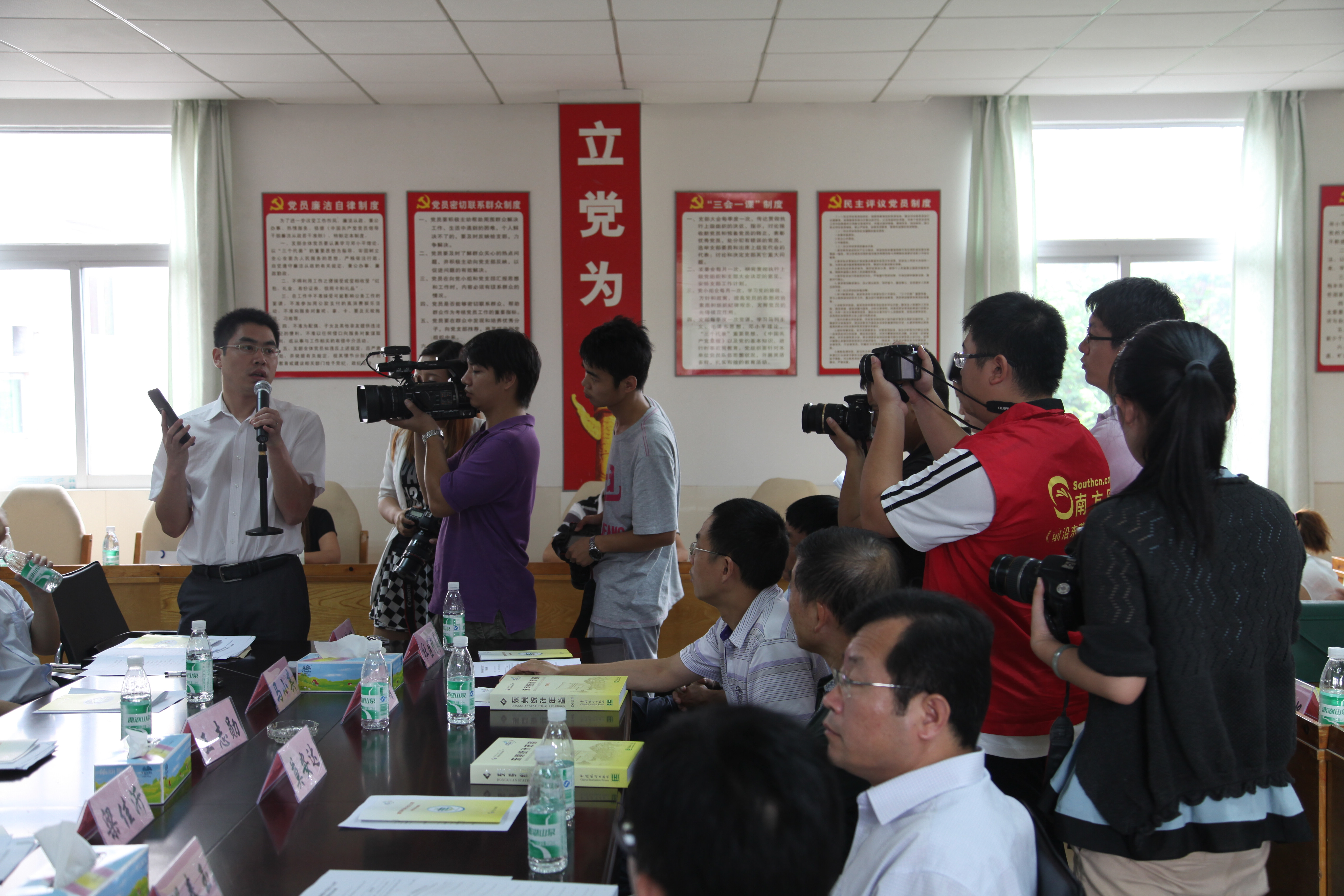 9月12日,局队在位于南城周溪的市第三次经济普查办公室联合举办了第四届“中国统计开放日之东莞”现场活动。东莞活动主题为“东莞统计调查为您服务”。本次活动作为全国统计系统统计开放日活动的一部分,旨在转变工作作风,深入基层和群众,通过面对面开展交流,宣传当前东莞统计调查的重点工作,共同探讨统计调查工作如何更好地服务社会,进一步拉近统计调查部门和社会公众的距离,进一步增强东莞统计调查的透明度和公信力。参加开放日现场活动的人员有局队主要领导,南城街道分管统计的领导,来自市委党校、社科联、东莞理工学院的专家教授、市内外媒体代表、镇村统计代表以及统计调查户代表。