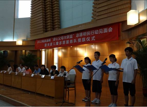 8月15日,局队黄才凤、雷款婷等4名同志前往麻涌参与“爱心父母大联盟”志愿帮扶行动见面会暨关爱儿童志愿服务队授旗仪式,代表局队所有参与助学行动的“爱心父母”为孩子们送上助学金、关怀和祝福。