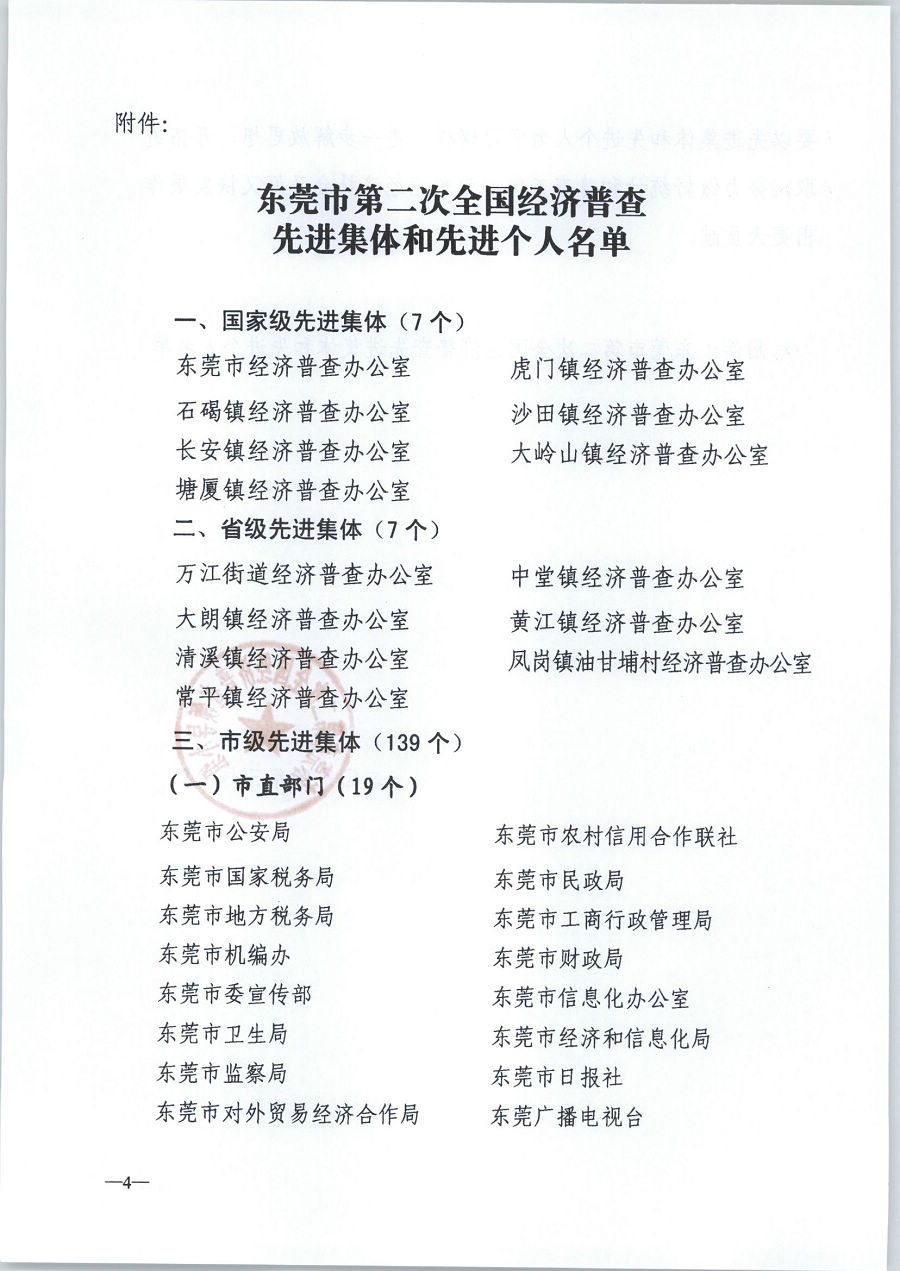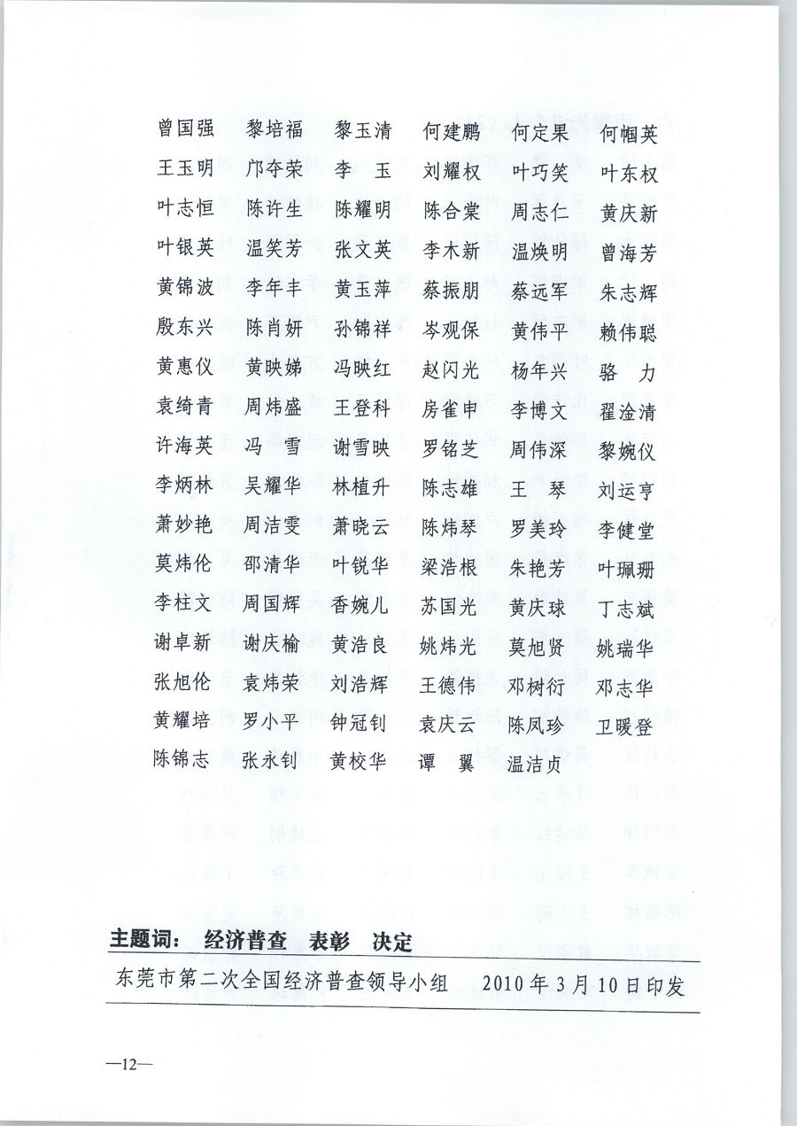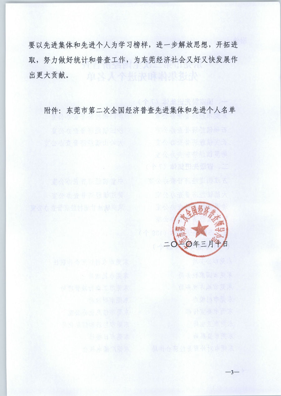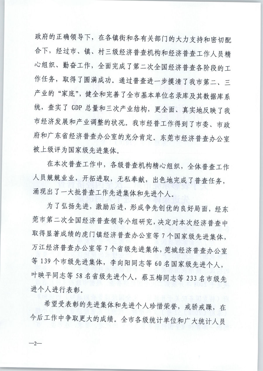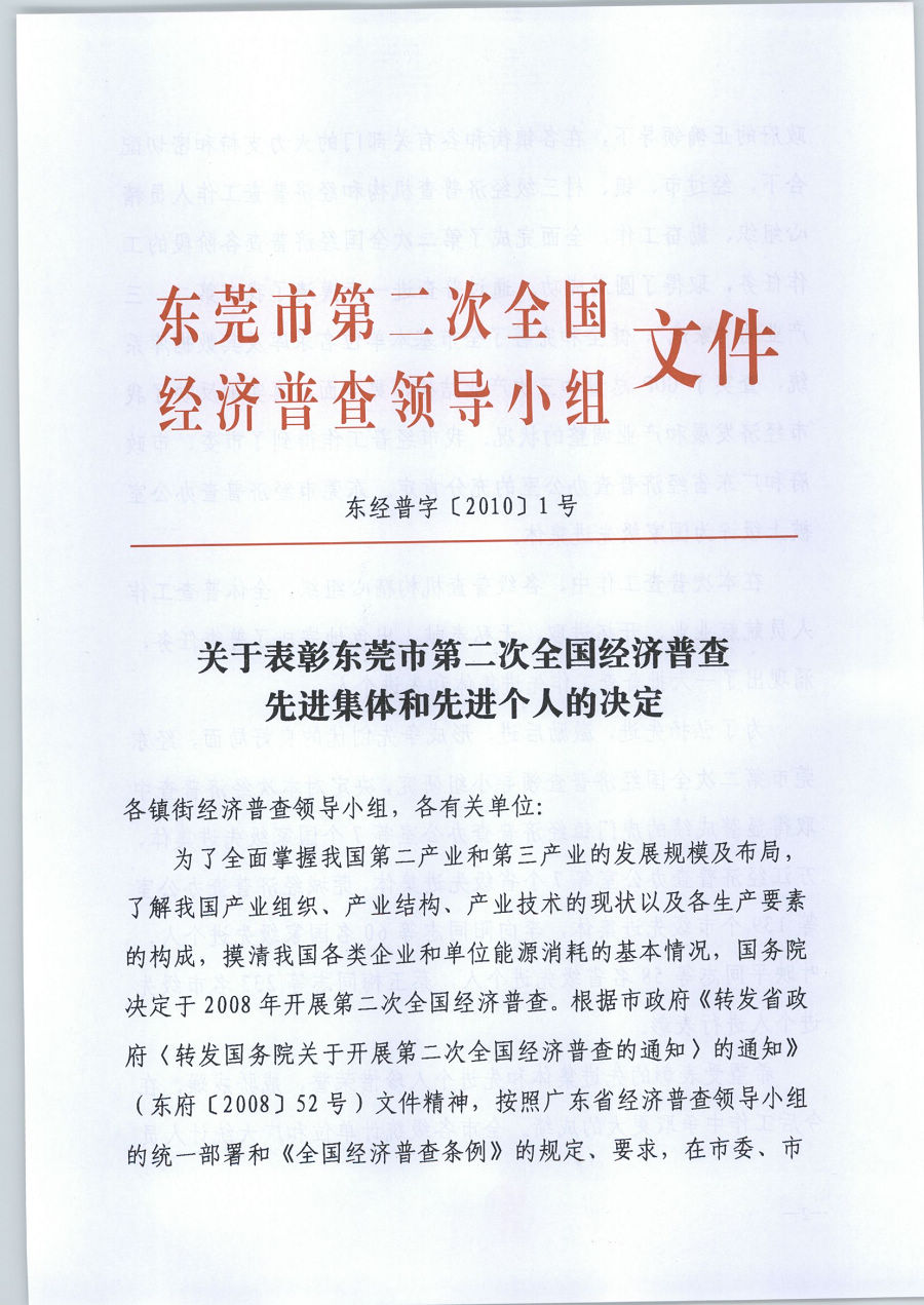 关于表彰东莞市第二次全国经济普查先进集体和先进个人的决定