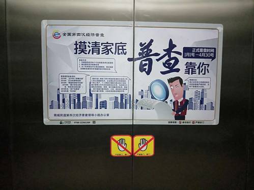 (各园区,商业大厦电梯上架关于宣传全国第四次经济普查的广告。)