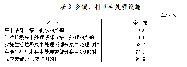 2016年末,我市100%的乡镇集中或部分集中供水,100%的乡镇生活垃圾集中处理或部分集中处理。98.7%的村实施生活垃圾集中处理或部分集中处理,73.9%的村实施生活污水集中处理或部分集中处理,99.8%的村完成或部分完成改厕。
