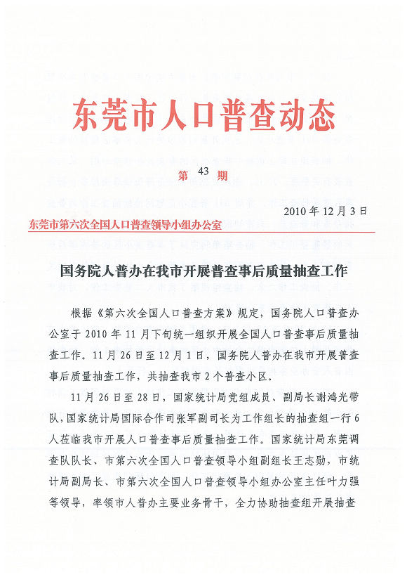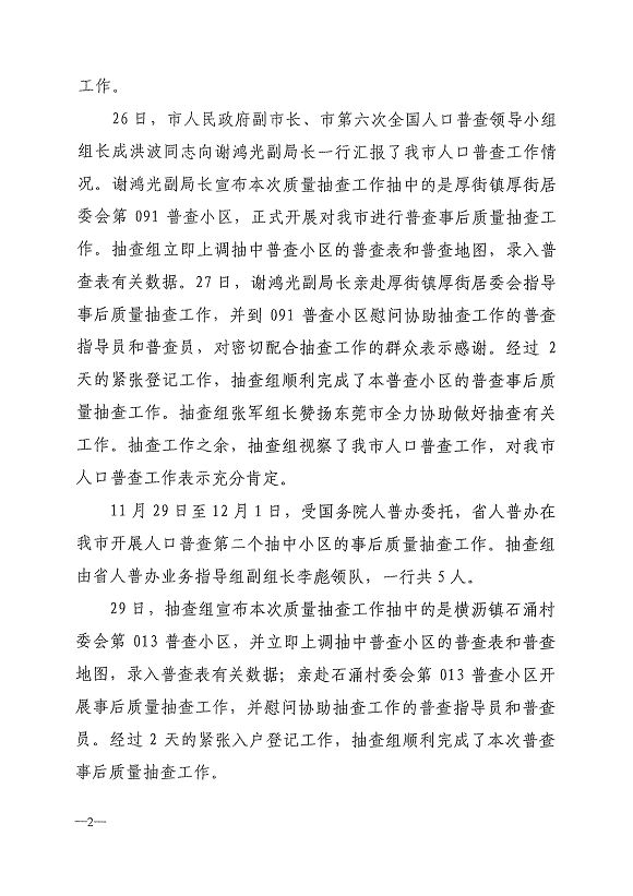 国务院人普办在我市开展普查事后质量抽查工作