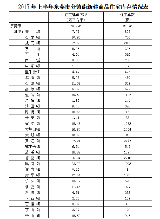 注:1.本次公布新建商品住宅库存数据来源于东莞市房产管理局。