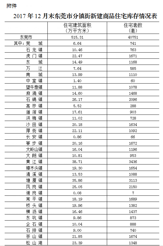 注:1.本次公布新建商品住宅库存数据来源于东莞市房产管理局。
