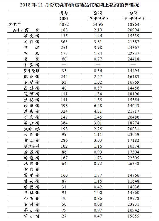 附件:2018年11月份东莞市新建商品住宅网上签约销售情况