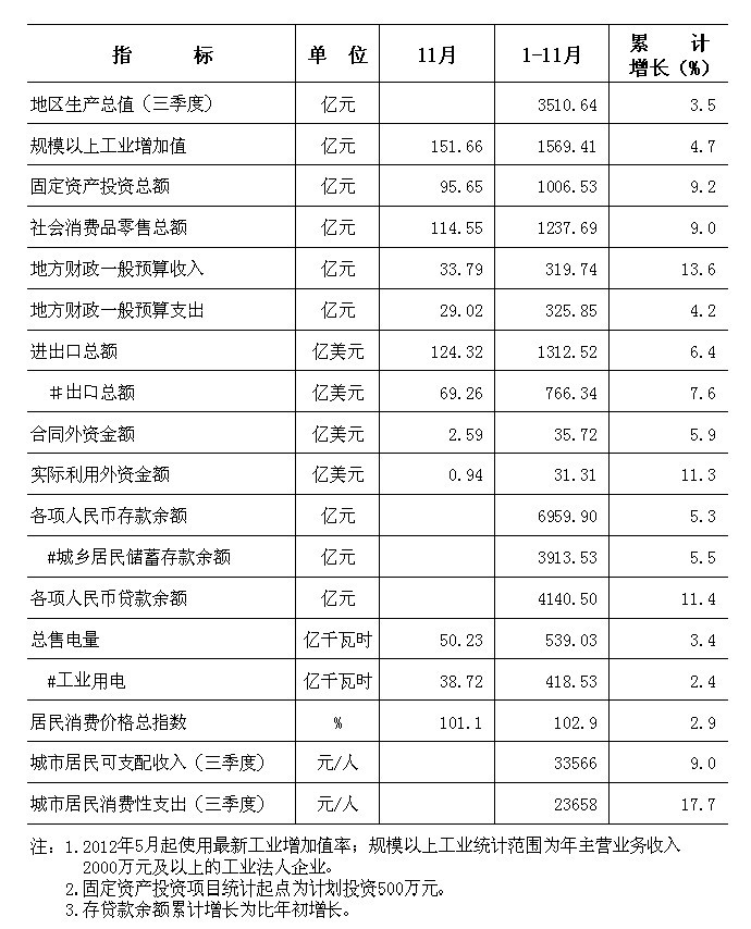 2012年11月东莞市主要经济指标