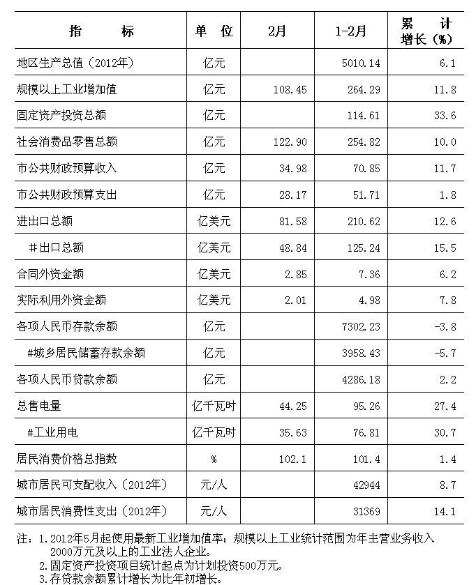 2013年2月东莞市主要经济指标