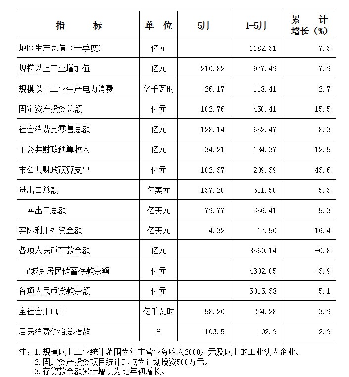 2014年1-5月东莞市主要经济指标