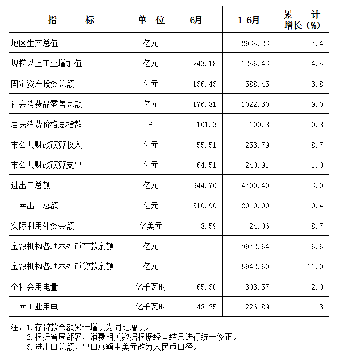 2015年上半年东莞市主要经济指标
