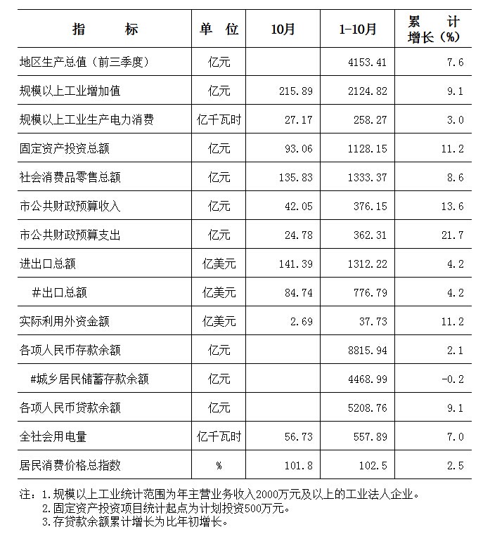 2014年1-10月东莞市主要经济指标