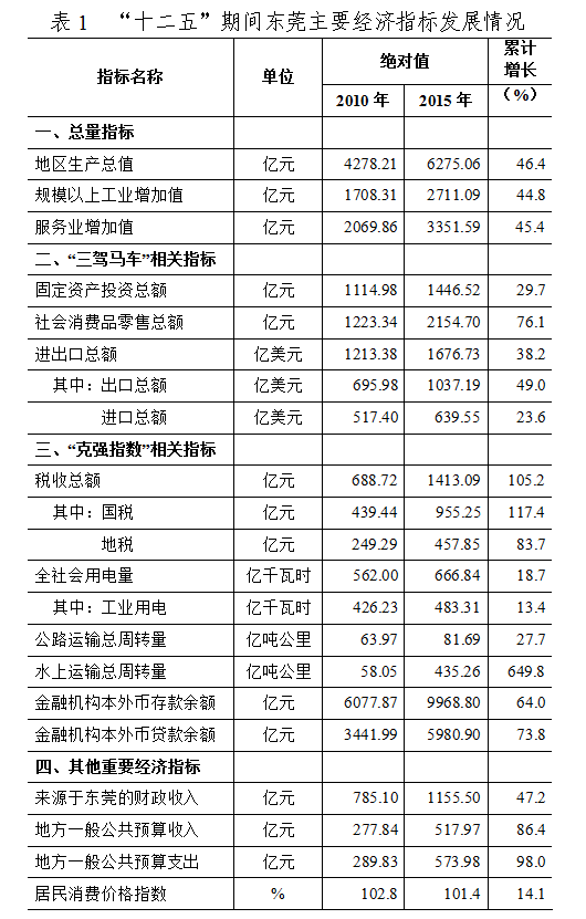 “十二五”期间,东莞生产总值由2010年的4278.21亿元,增加到2015年的6275.06亿元,跨越了5000亿、6000亿两个台阶,按国家外汇局公布的年平均汇率(6.2284)折算,超过1000亿美元,迈入千亿美元“俱乐部”。