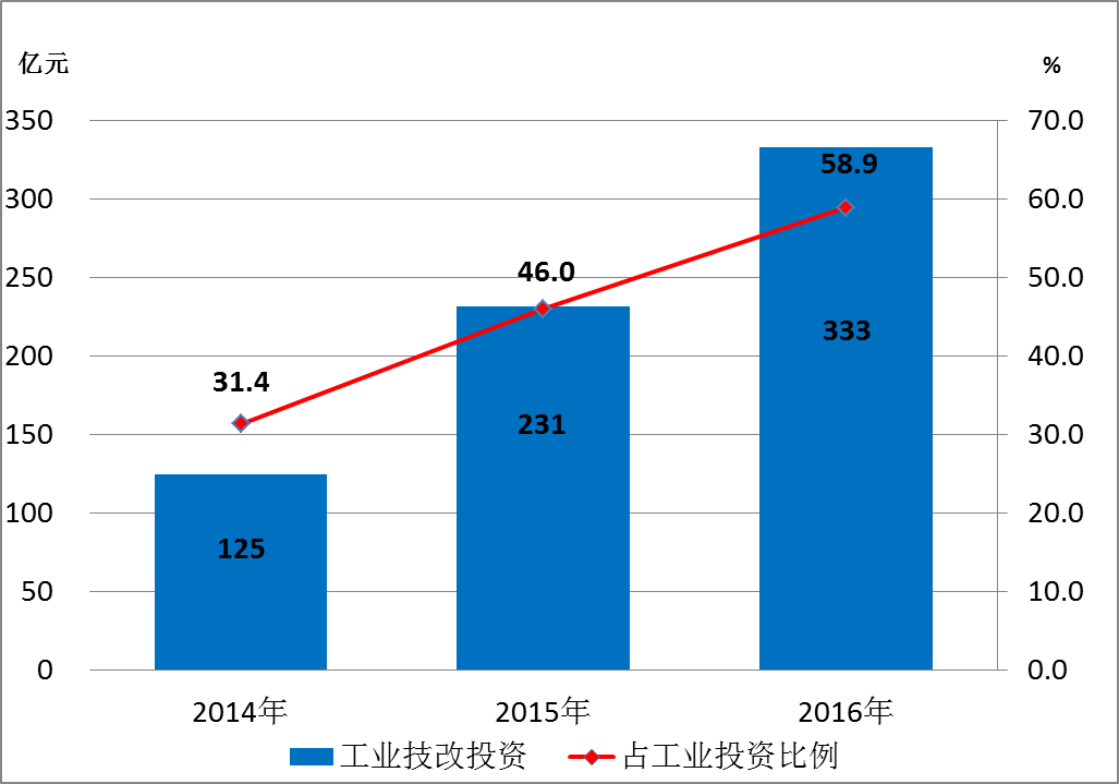图3:2014-2016年工业技改投资发展情况