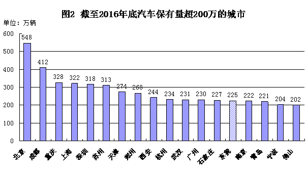 (一)汽车成为推动市场消费的主打商品。随着百姓收入水平的提高,人们对生活质量的要求也不断提高,汽车特别是私家车消费发展速度空前高涨,成为消费市场主要的支撑点。2016年仅限额以上企业的汽车零售额就达597.16亿元,是2012年的2.03倍。2013-2016年,汽车类商品零售额年均增长19.4%,高于全市限上零售额平均增速5.2个百分点。截止2016年底,全市汽车保有量超过200万辆,达224.62万辆,比2012年(120.70万辆)多86.1%,在全省排第3位,在全国排第14位。