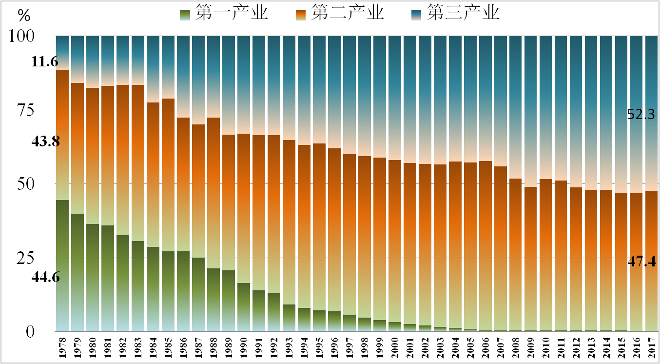 1978-2017年东莞三次产业结构图