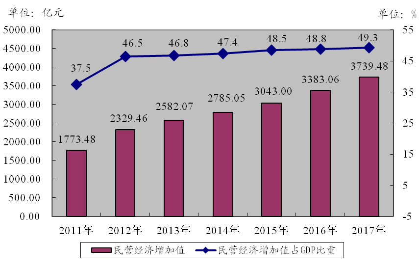 1民营经济新口径:由于从2011年开始,民营经济在新口径下进行统计,与2011之前的数据不具有可比性,所以下文的数据主要从2011年之后开始分析。