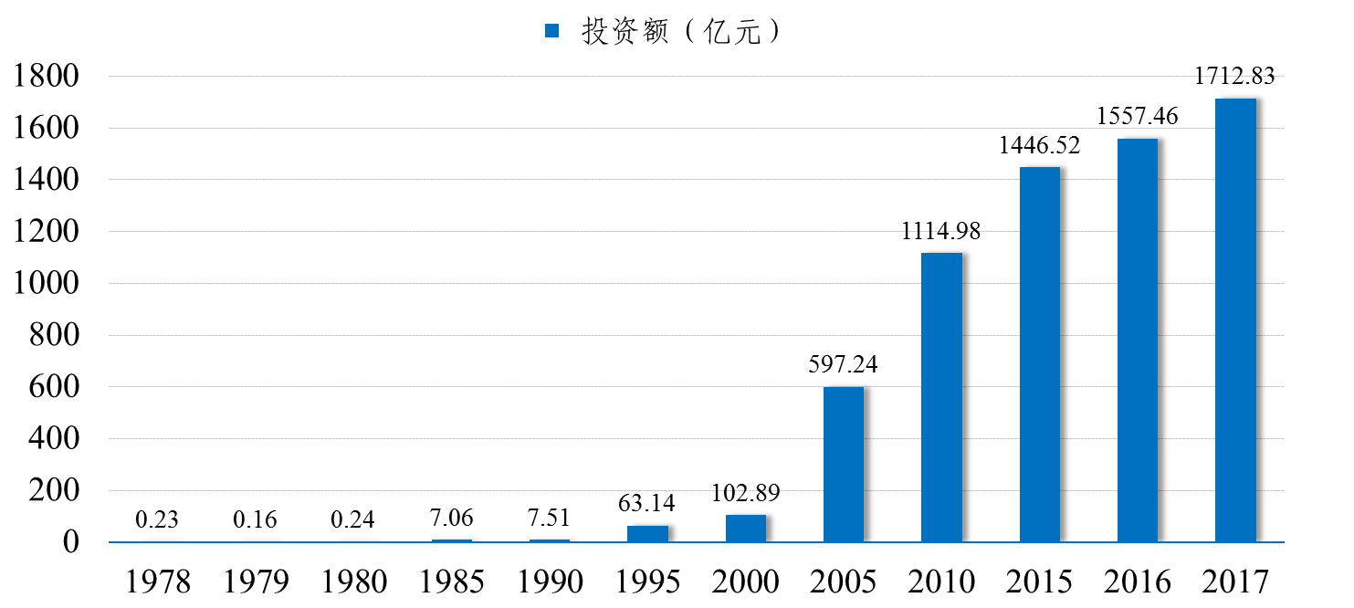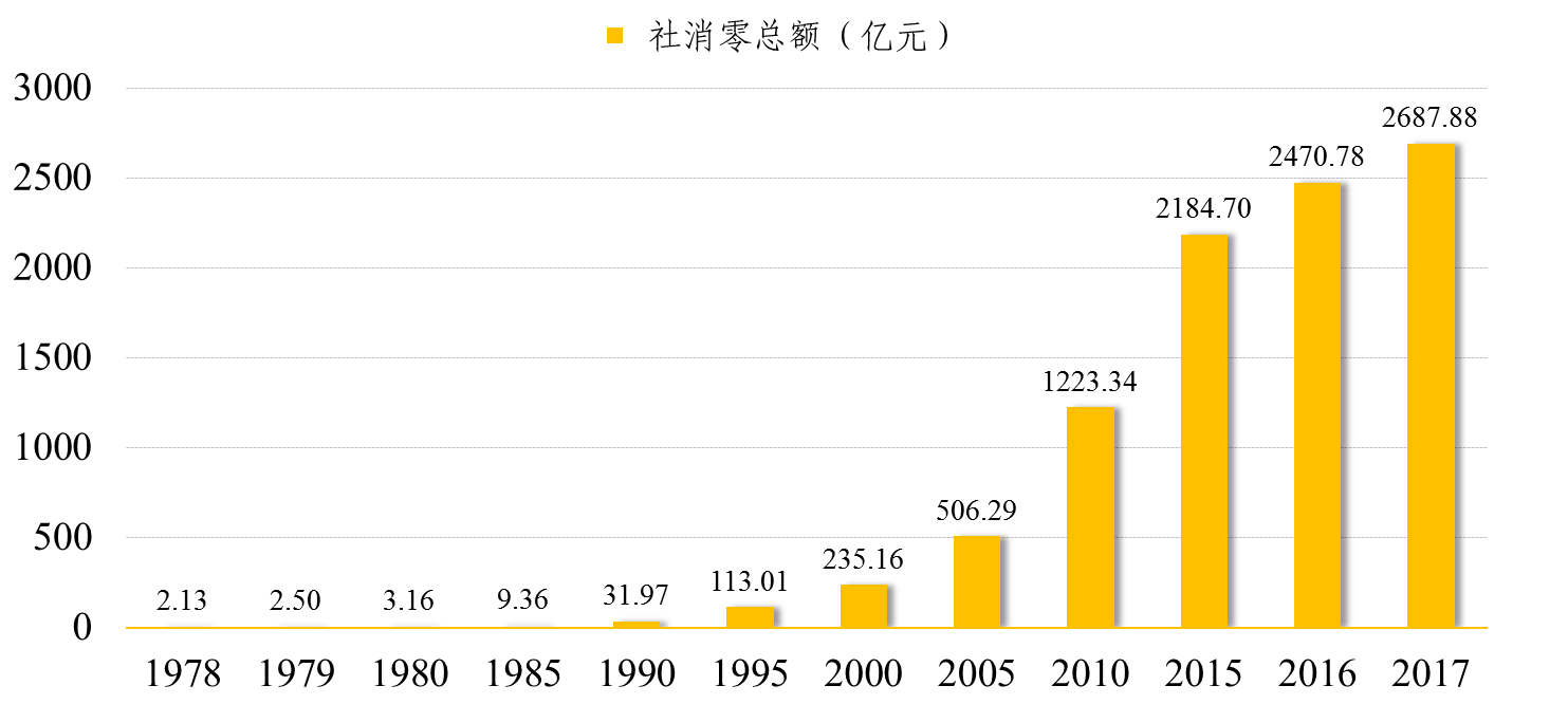 图8 1978-2017年东莞社会消费品零售总额走势图