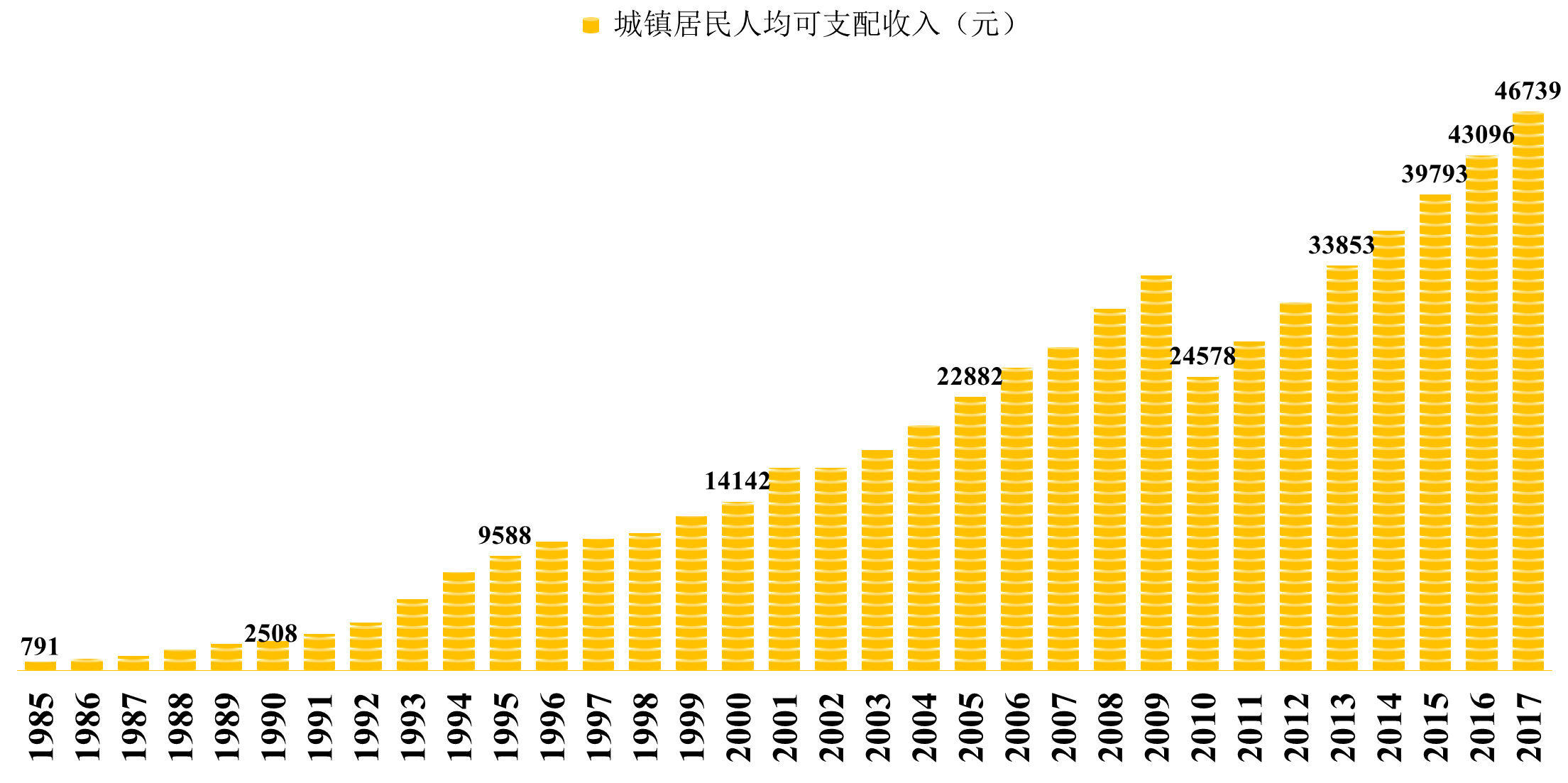 改革开放40年,是东莞人民生活水平和质量显着提高的40年。1978年,全市城乡居民储蓄存款余额仅有0.54亿元,农民人均纯收入只有149元。40年过去了,人民生活水平和生活条件发生了巨大变化,东莞居民家庭的生活水平经历了从摆脱贫困—解决温饱—奔向小康—迈向富足的过程,消费支出投向趋势经历了从奢望─拥有—饱和—富有选择性的进程。广东自2014年起正式启动分市县城乡一体化住户调查改革工作。东莞居民收入稳步增长,2017年全年居民人均可支配收入45451元,是2010年的2.0倍,年均增长10.1%。
