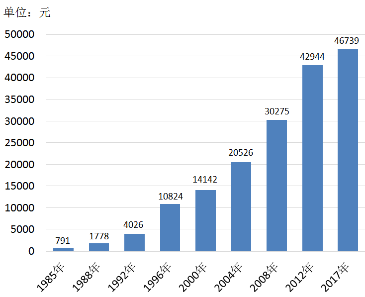 改革开放以来,东莞经济实力大幅提升,城镇居民收入持续稳定增长。据调查数据显示,东莞城镇居民人均可支配收入从1985年1的791元增加至2017年的46739元,跨过“万元、两万元、三万元、四万元”四道大关,年均增长13.6%。