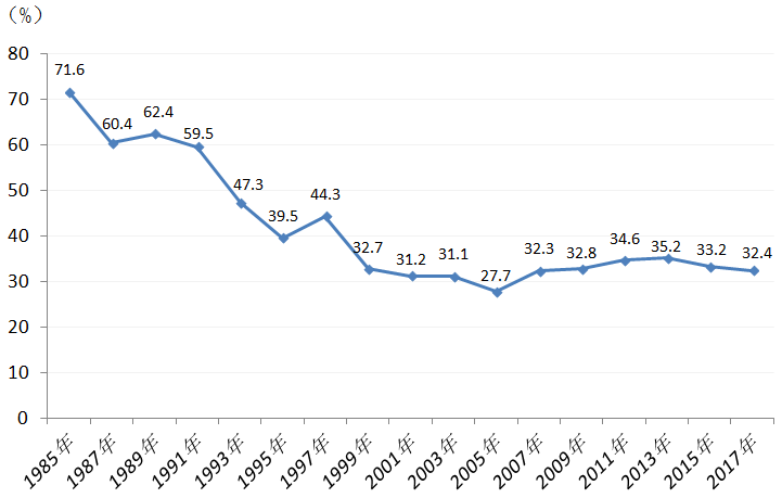 图3 1985-2017年东莞城镇居民恩格尔系数