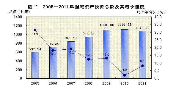 注:从2011年起,固定资产投资统计起点由50万元提高到500万元,2011年的增速按同口径计算。