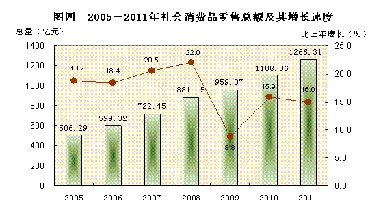 注:社会消费品零售总额2010年和2011年统计口径均有调整,增长速度按同口径计算。