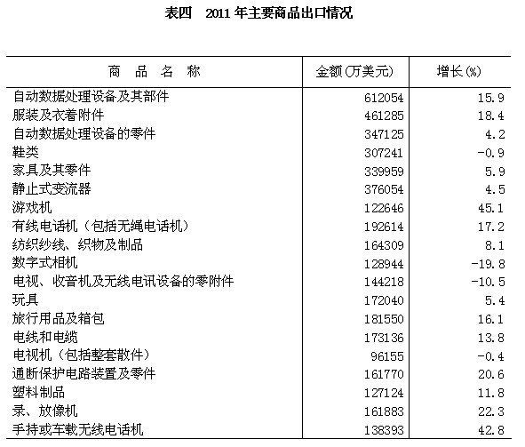 全年机电产品出口556.16亿美元,增长12.4%,占出口总额的71.0%;高新技术产品出口273.42亿美元,增长13.0%,占34.9%。