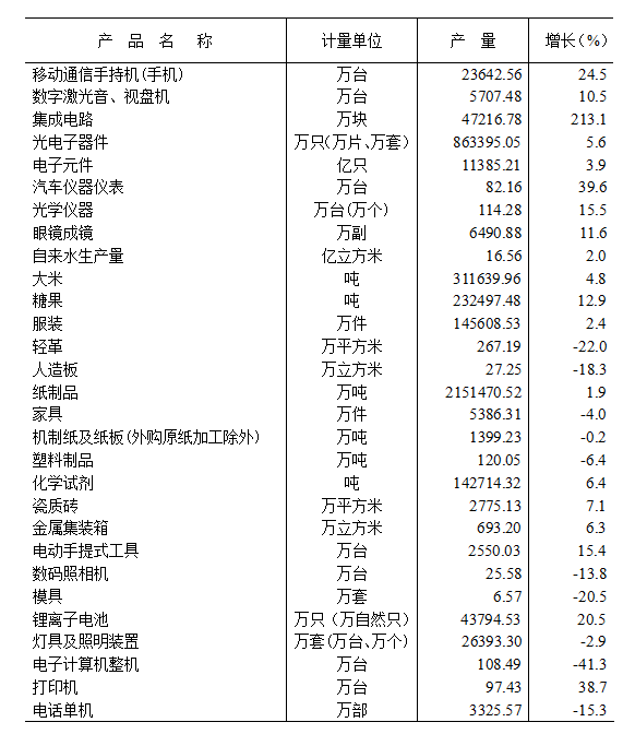 全年机电产品出口707.12亿美元,增长1.6%,占出口总额的68.2%;高新技术产品出口354.34亿美元,下降3.0%,占34.2%。