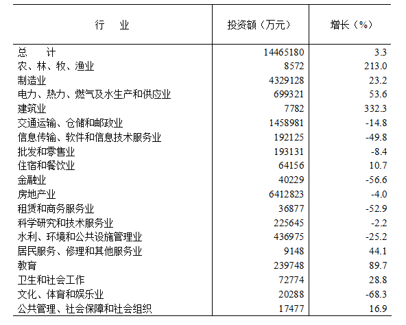从产业投向看,投资集中在第二、三产业。第二产业投资503.62亿元,其中制造业投资432.91亿元;第三产业投资942.04亿元。