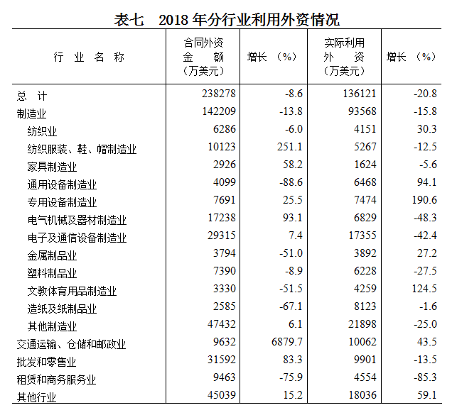 全年全市新签外商直接投资项目1400宗,合同外资金额23.83亿美元,比上年下降8.6%。实际利用外资13.61亿美元,下降20.8%。其中,制造业实际利用外资9.36亿元,下降15.8%,占全市实际利用外资68.7%。